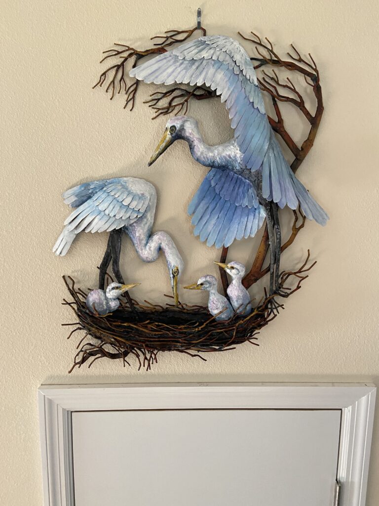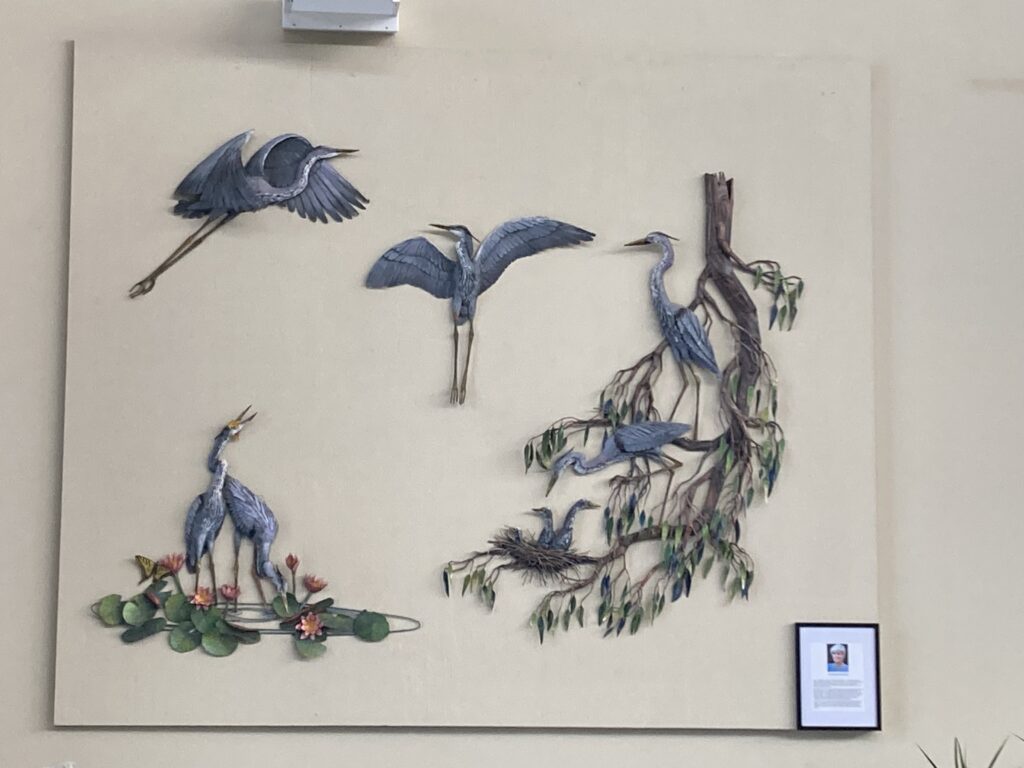Ann L. Opgenorth was beloved by her fellow artists and Gallery members. She passed away on Wednesday, February 16, 2022, at Shands Hospital in Gainesville, FL, as the result of an accident. She was born in Madison, Wisconsin on March 27, 1942, to the late Virginia Annie Bonesho and Alexander H. Opgenorth. Ann was a graduate of Marycrest College, Davenport, Iowa with a Bachelor of Arts degree and Master of Fine Arts degree from the University of Notre Dame. She was also a member of Kappa Gamma Pi. Ann was assistant professor of art at Marycrest College for six years before resigning to work full time as a professional artist. Her artworks, spanning metal sculpture (which include the wolves at Florida Gateway College and the steel sculpture at Alligator Lake), wood carving, painting, art glass, and quilting, have been displayed internationally in West Berlin, Germany, Seoul, Korea, and in many churches in the United States. Ann was the founder of Ivy Ridge Studios, which she opened in 1964 in LeClaire, Iowa before relocating to Lake City, FL in 1990. She was commissioned for numerous paintings and sculptures for homes and public buildings and won many awards including those from the National Sculpture Society, the American Institute or Architects, and was listed in “Outstanding Young Women of America.” Ann is survived by her husband Monroe Morrell and step children Larry Morrell of Longwood, FL, Bob Morrell of Cape Coral Florida and Marilyn Hamm of Lake City, FL. Some of her work can still be found within the Gateway Art Gallery, thanks to the generosity of her family.