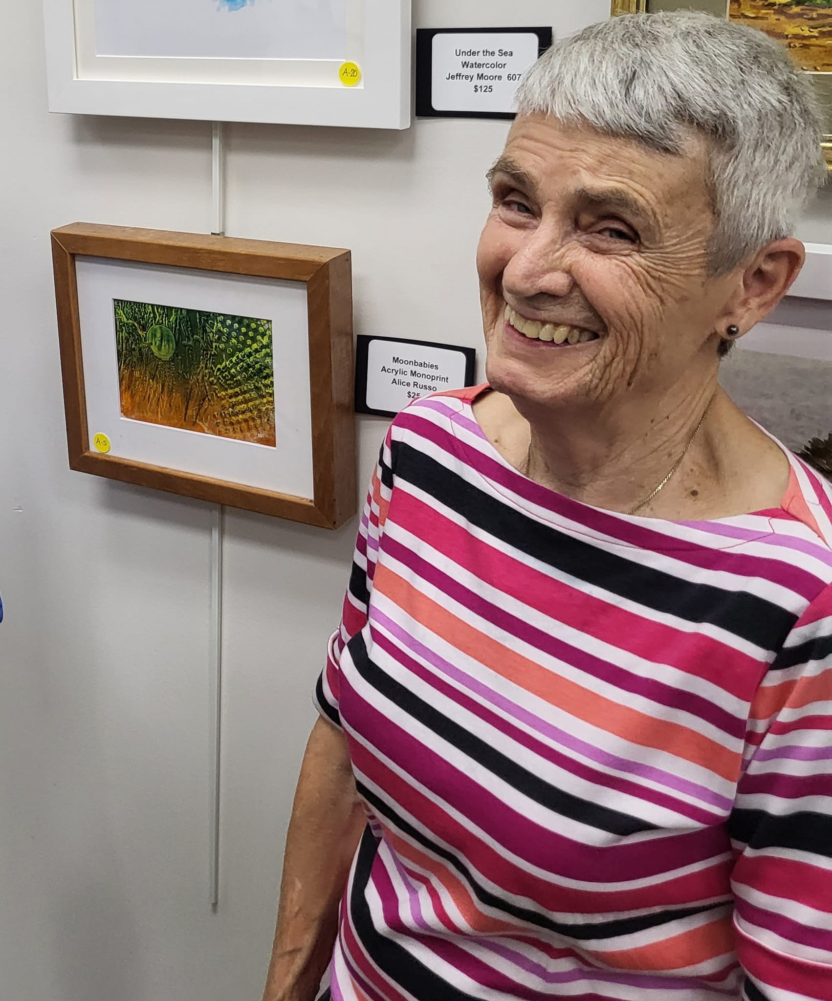 A member of the Gateway Art Gallery, Alice shares her expertise and passion through local exhibitions and art events. Whether she’s carving a linocut, experimenting with monoprints, or assembling vibrant collages, her work invites viewers to explore the rich interplay of paper, ink, and creative intuition.