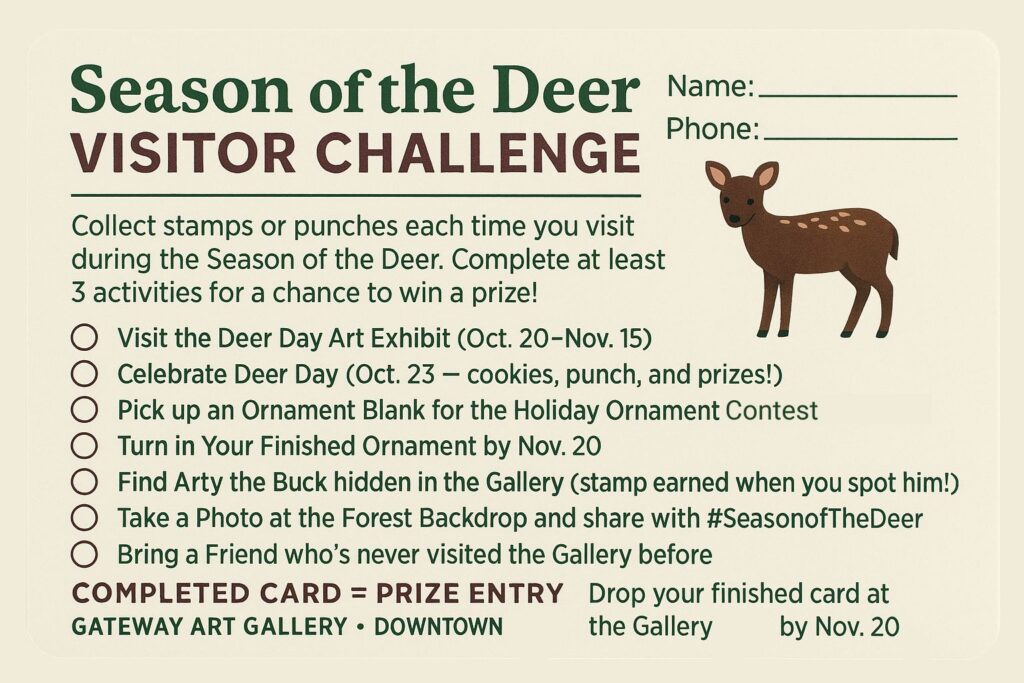 - Visit the Deer Day Art Exhibit (Oct. 20–Nov. 15)