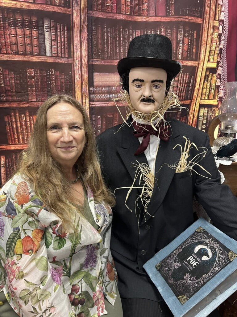 To close out the afternoon, members and guests took photos with our entry in the Hearthstone Botanical Gardens Scarecrow Contest—“Edgar Allan Scarecrow.” It was a wonderful day of food, fellowship, and inspiration. 47 people were in attendance. Thank you to everyone who joined us!